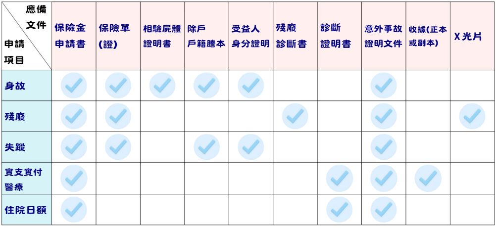伍、 請各項保險金時,所應檢附之文件如下: